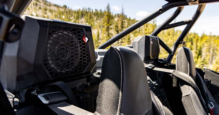 - Werkseitig abgestimmtes und integriertes Rockford Fosgate Stage 4 Audiosystem mit RIDE COMMAND-Steuereinheit. Enthält: (2) 100-W-1"-Hochtöner, (2) 100-W-6,5"-Komponentenlautsprecher vorne, (2) 100-W-6,5"-Koaxiallautsprecher hinten, (1) 400-W-4-Kanal-Verstärker und (1) 10"-Subwoofer mit integriertem 400-W-Subwoofer-Verstärker.